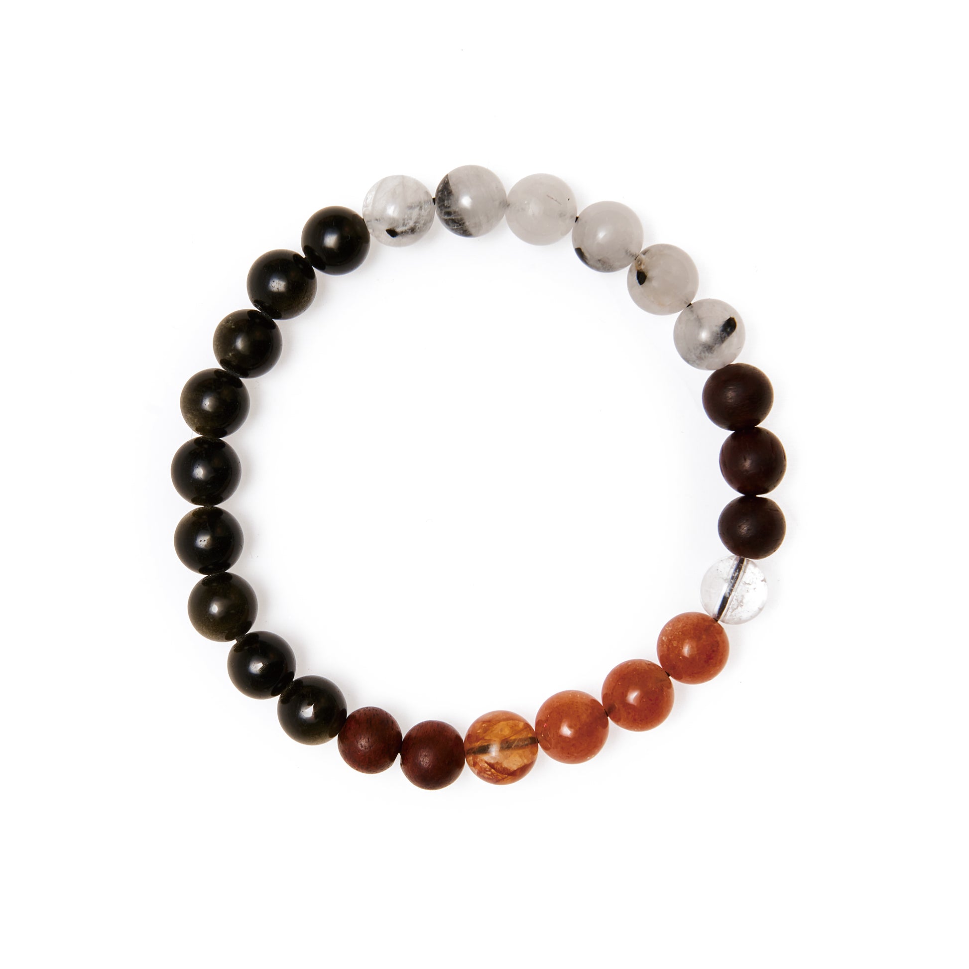 Inspiriert von den Farben des Linggu-Tempels in Nanjing vereint dieses Armband Obsidian, Granat, weißen Phantomkristall und einen weißen Kristall.