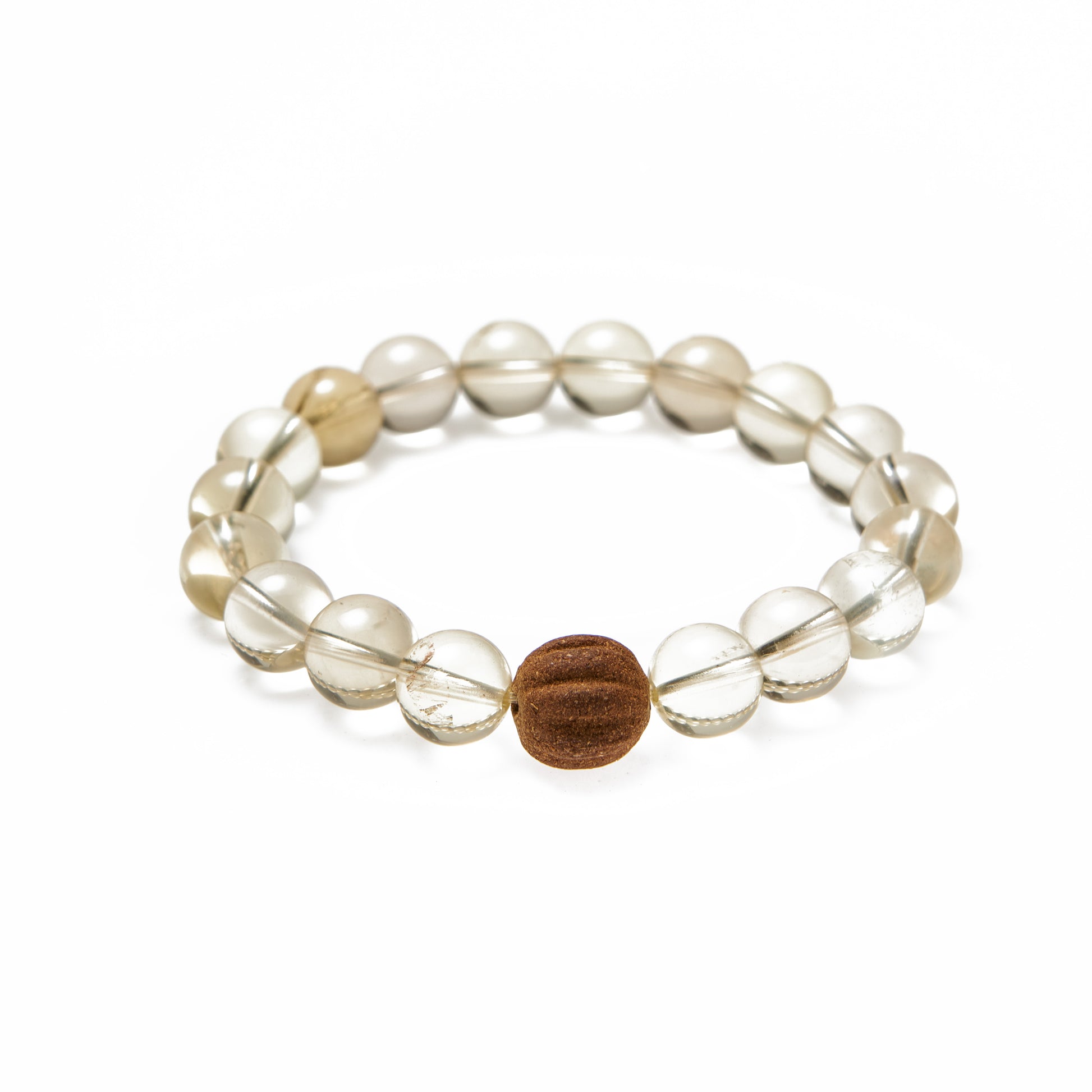 The 10mm citrine and the single Tibetan wooden bead in the center bring you fresh perspectives, grounded in both the deep earth and the high plateau.
