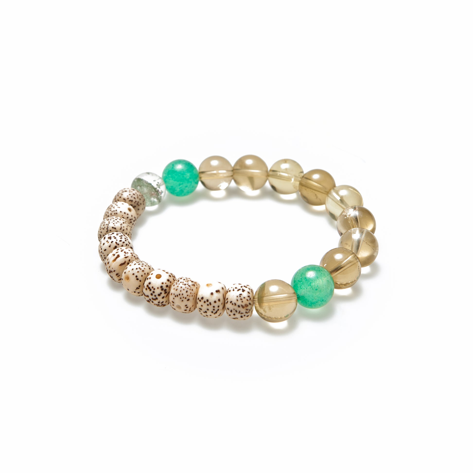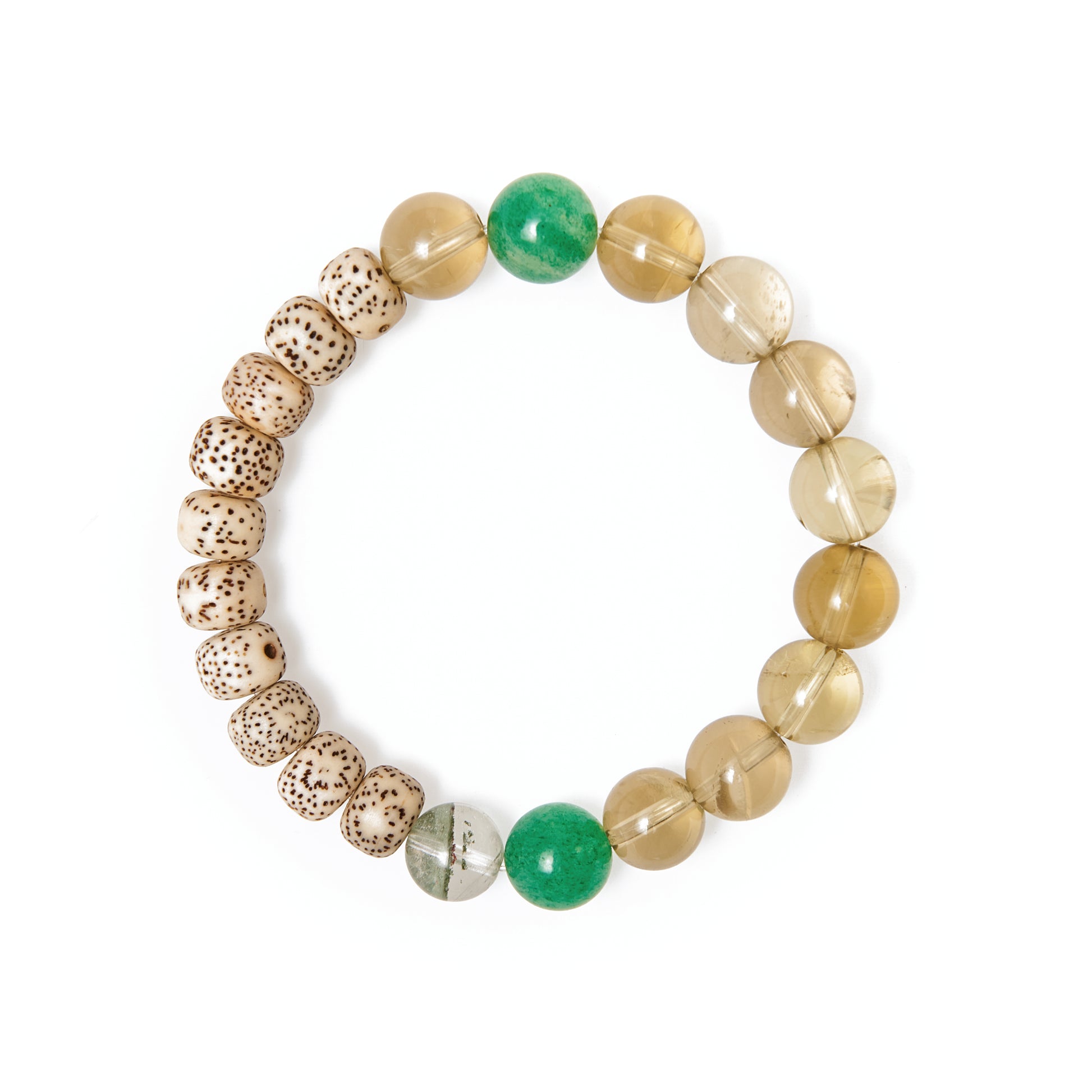 This is one of our Inner Temple series pieces that features Longhua temple in Shanghai. Inspired by its vibrant green tiles and yellow walls, this bracelet combines bodhi, citrine, green phantom crystal and clear green crystal. May there be peace and clarity in you, on you, and around you.